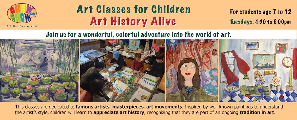 8 weeks classes dedicated to famous artists, masterpieces, art movements. Inspired by well-known paintings to understand the artist’s style, children will learn to appreciate art history, recognizing that they are part of an ongoing tradition in art.